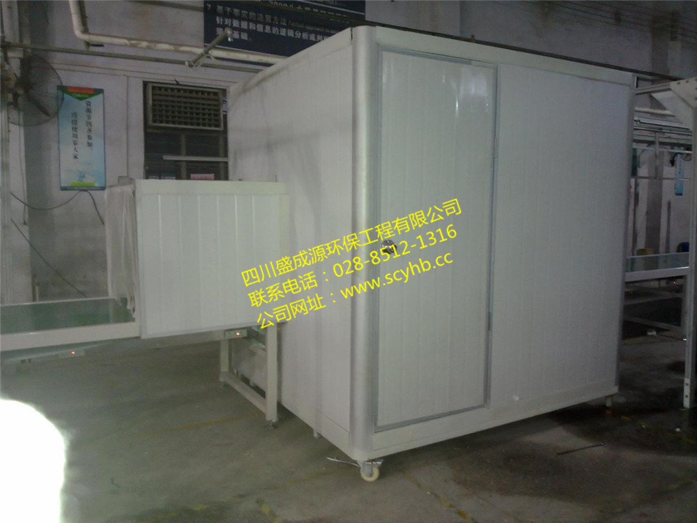 是一种为有测试要求的产品制造车间设计的隔声测试装置,在隔声间内进行吸声处理,使其成为一个小型的无声室,在里面可测试一些小型的产品,如精密仪器、电机、音响、变压器等。